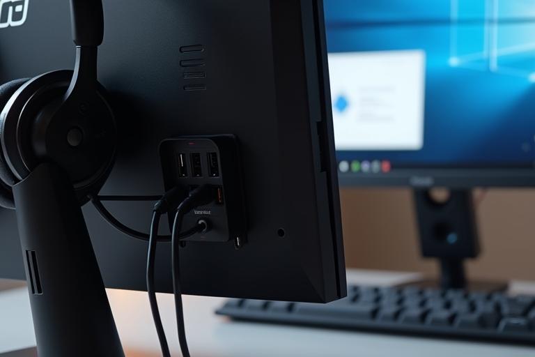- Verbinde USB-Geräte (z.B. Maus, Tastatur, Webcam) mit den USB-Ports des Monitors, sofern unterstützt.