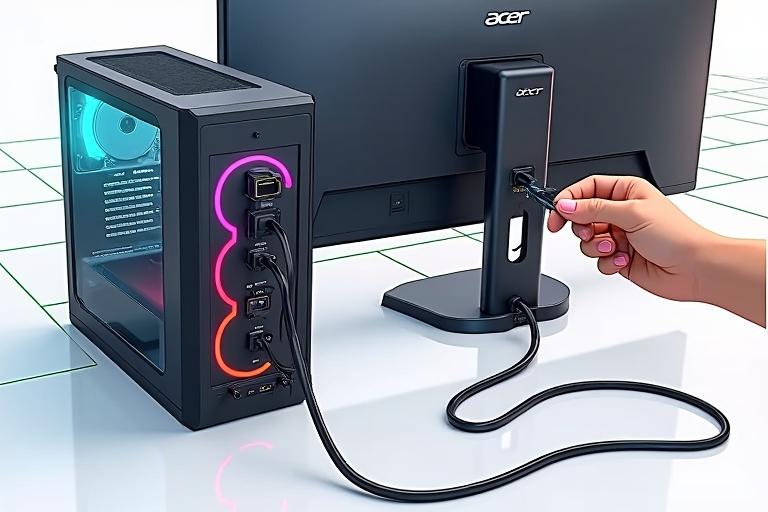 - Wähle das passende Videokabel (HDMI oder DisplayPort) je nach Ausgang deines PCs oder deiner Konsole.