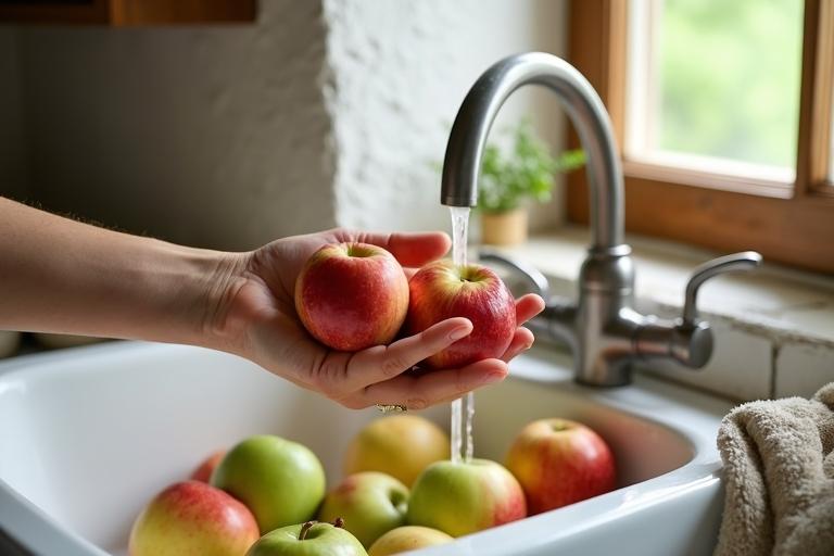 - Wasche die Äpfel gründlich unter fließendem Wasser, um Rückstände zu entfernen.