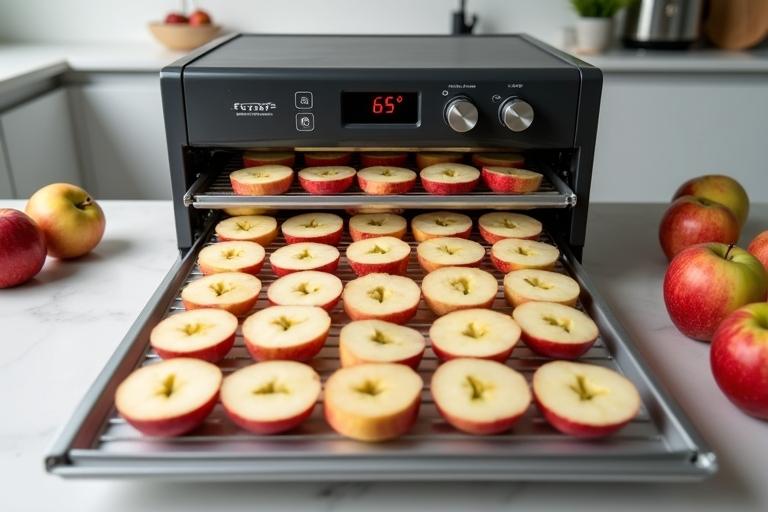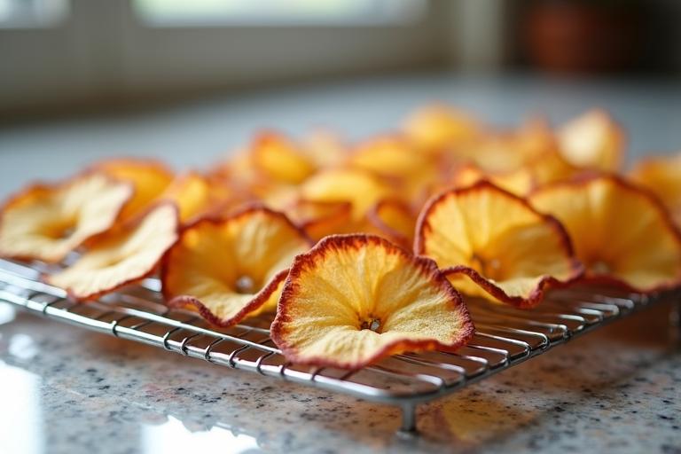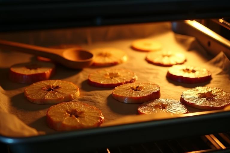- Dörr die Apfelscheiben für 5–8 Stunden, bis sie knusprig sind, und prüfe regelmäßig den Trocknungsgrad.