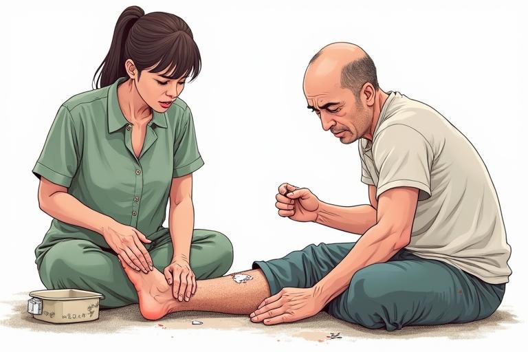 - Halte das Bein so ruhig wie möglich, um weitere Verletzungen zu vermeiden.
