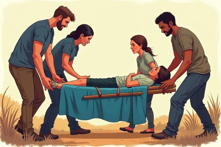 - Organisiere eine Trage oder improvisiere mit einer Decke, Jacke oder stabilem Brett.