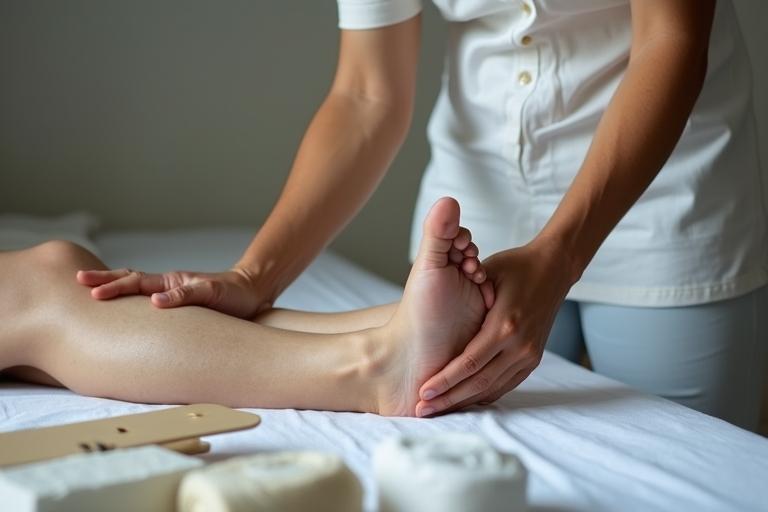 - Lege einen Druckverband an, ohne die Blutzufuhr zum Fuß zu unterbrechen.