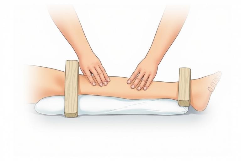 - Fixiere mindestens drei Punkte: oberhalb des Bruchs, auf Höhe des Bruchs (seitlich, nicht direkt auf der Bruchstelle) und unterhalb des Bruchs.