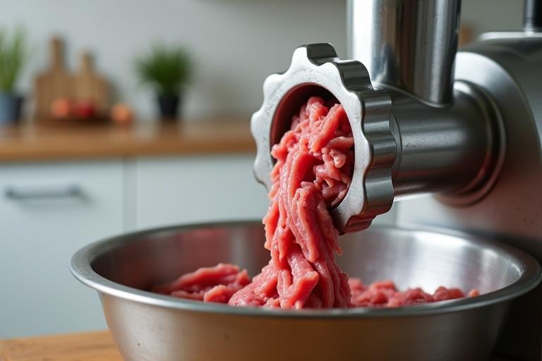 - Das vorbereitete Fleisch portionsweise durch den Fleischwolf drehen.