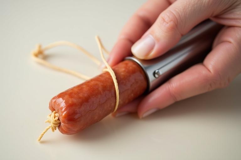 - Jede Wurst abwechselnd in entgegengesetzte Richtungen drehen, damit sie sich nicht wieder öffnen.