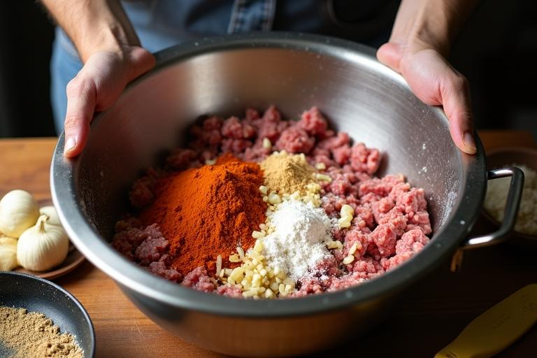 - Die Temperatur der Zutaten ist entscheidend: Fleisch und Wasser sollten möglichst kalt sein, damit die Masse bindet und die Wurst saftig bleibt.