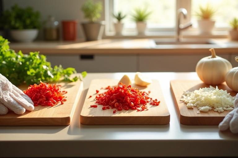 - Trage beim Verarbeiten scharfer Chilis immer Handschuhe und vermeide Kontakt mit Augen und Schleimhäuten.