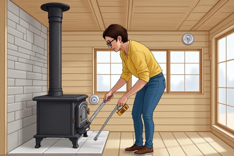 - Montiere ggf. Brandschutzplatten an der Wand hinter dem Ofen.