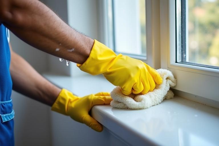 - Eventuelle Wasserreste auf der Fensterbank oder am Rahmen aufnehmen.