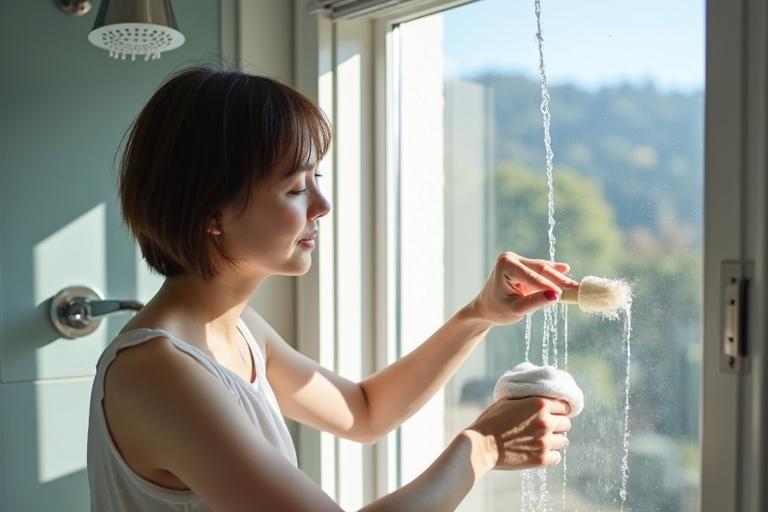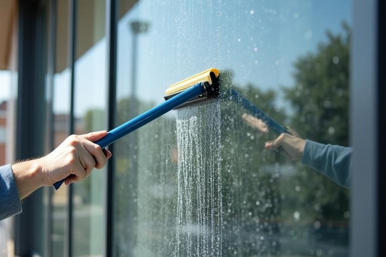 - Alle benötigten Utensilien griffbereit legen: Abzieher, Mikrofasertücher, Schwamm, Fensterleder, ggf. Teleskopstange und Handschuhe.