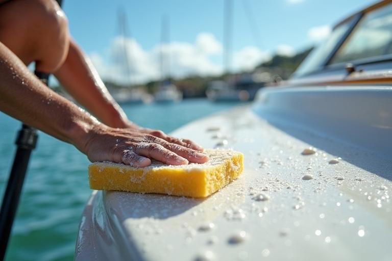 - Verwenden Sie eine weiche Bürste oder einen Schwamm, um die Gelcoat-Oberfläche in kreisenden Bewegungen zu reinigen.