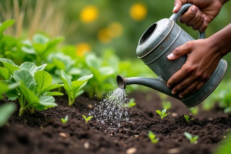 - Gieße das Beet nach der Aussaat oder Pflanzung gründlich mit einer feinen Brause.