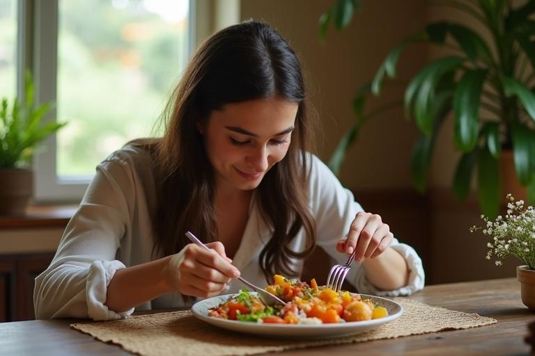 - Kaue langsam und achte auf dein Sättigungsgefühl, um Überessen zu vermeiden.