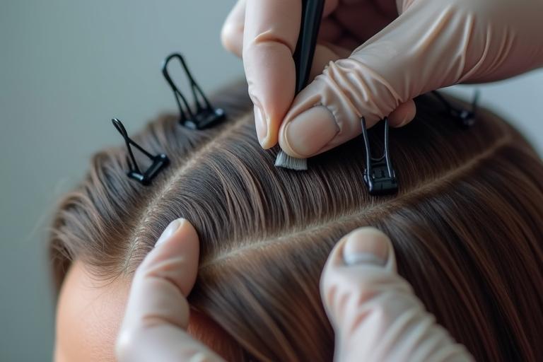 - Teile die Haare erneut in kleine Partien ab, um gezielt arbeiten zu können.