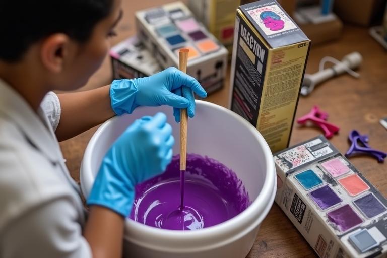 - Mische die Tönung oder Haarfarbe gemäß den Herstellerangaben in einer Schale an.