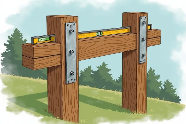 - Die beiden 2 m langen Pfosten senkrecht aufstellen und mit der 3 m langen Querlatte verbinden.
