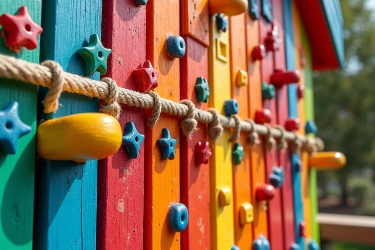 - Bringe zusätzliche Elemente wie Klettergriffe, Seile oder eine Rutsche an.