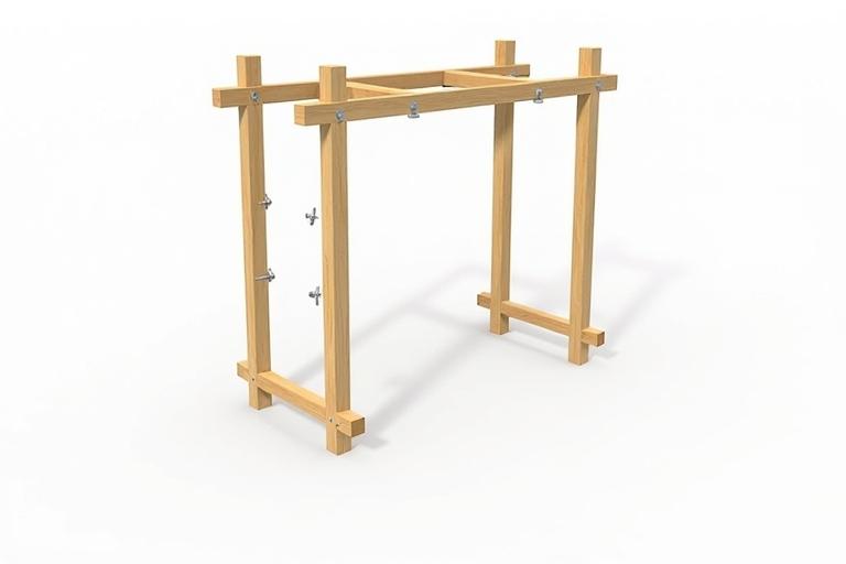 - Stecke die Sprossen in die vorbereiteten Bohrungen der Kanthölzer.