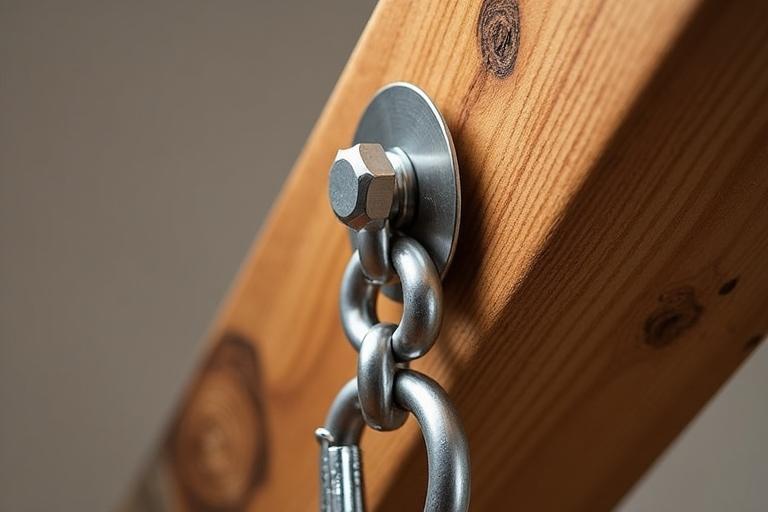 - Bohre ein Loch für die Schwerlastöse oder Ringschraube durch den Balken.
