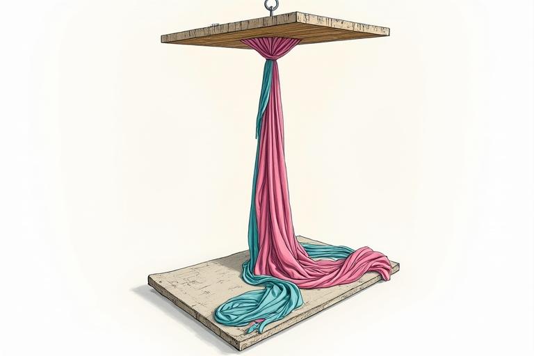 - Teste die Aufhängung vorsichtig mit leichtem Zug, bevor das Tuch voll belastet wird.