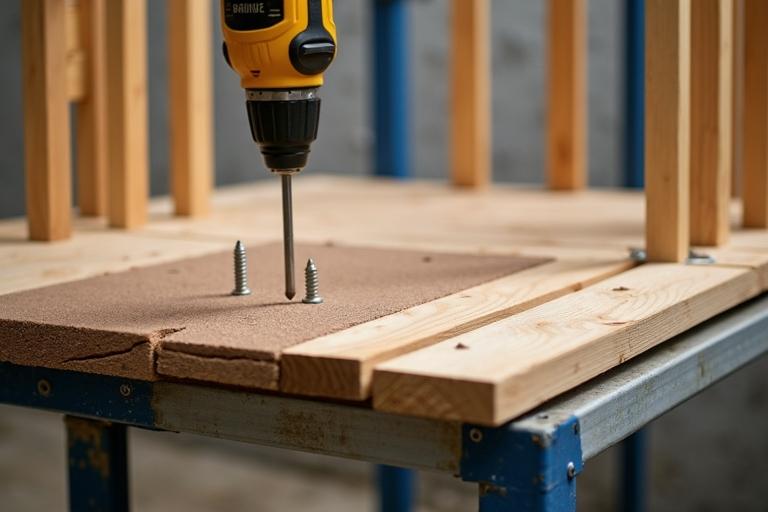 - Verschraube jede Sprosse von außen mit langen Holzschrauben und Unterlegscheiben.