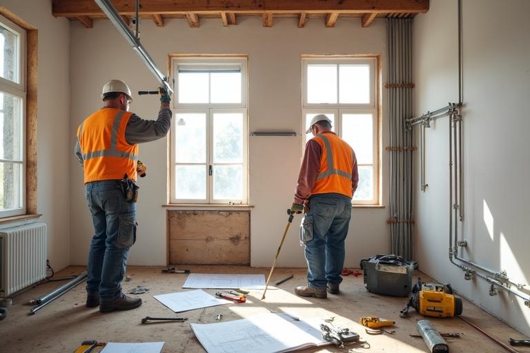 - Installiere Wasserleitungen, Abflüsse, Heizkörper und ggf. Fußbodenheizung.