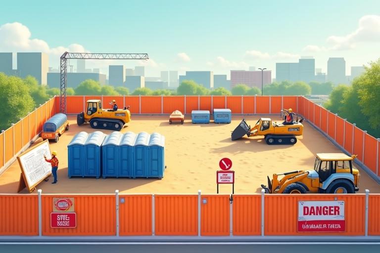 - Stelle Bauzaun, Bautoilette und Lagerflächen auf.