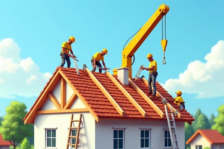 - Errichte den Dachstuhl aus Holz durch Zimmerleute.