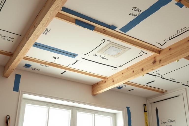 - Untersuche die Decke auf sichtbare Hinweise wie Nägel, Schrauben, Risse oder Unebenheiten, die auf den Verlauf der Balken hindeuten könnten.