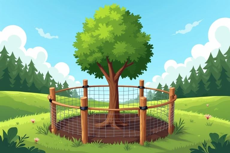 - Stelle das Wildschutzgitter kreisförmig um den Baum, mit mindestens 20 cm Abstand zum Stamm.