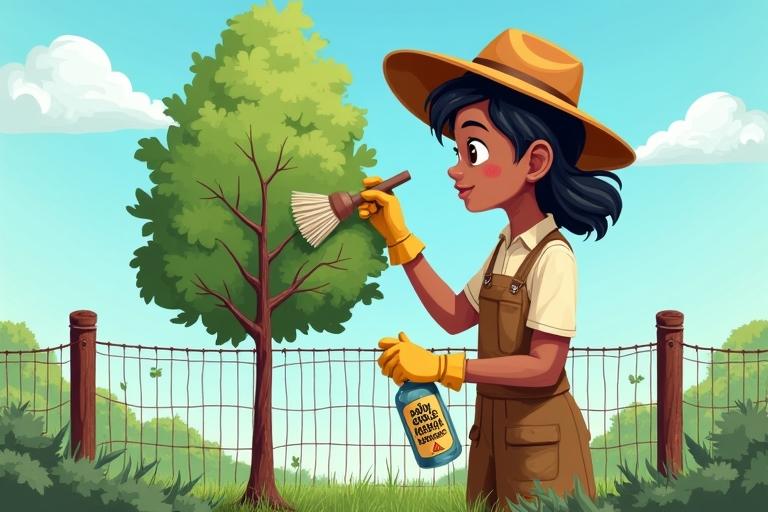 - Trage ein Wildverbissschutzmittel auf die Triebe und Knospen des Baumes auf.