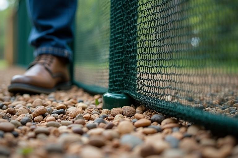 - Schlage die Pfähle etwa 30 cm tief in den Boden, sodass das Gitter stabil steht.