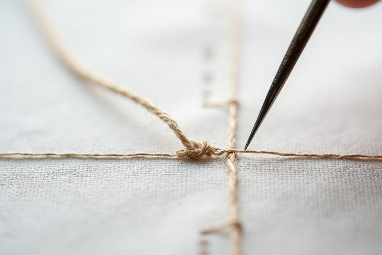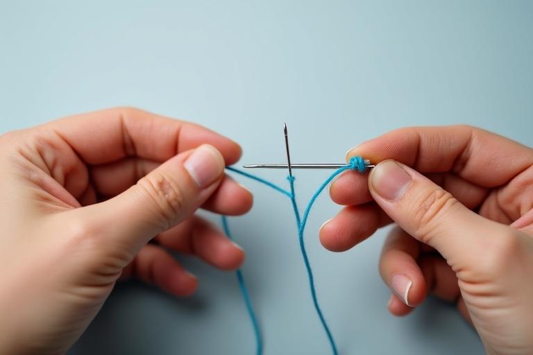- Verknote die beiden Enden des Fadens miteinander, sodass ein doppelter Faden entsteht.
