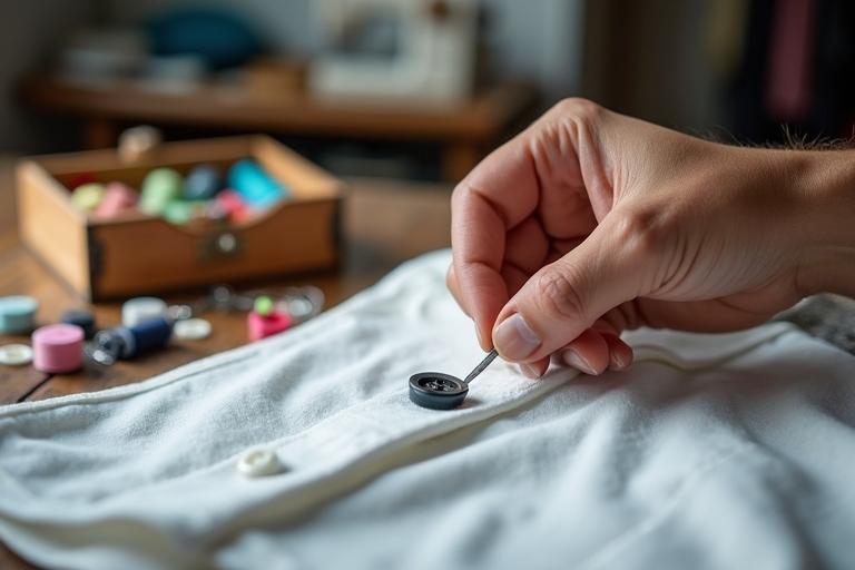 - Überprüfe, ob der Knopf fest sitzt und sich leicht durch das Knopfloch führen lässt.