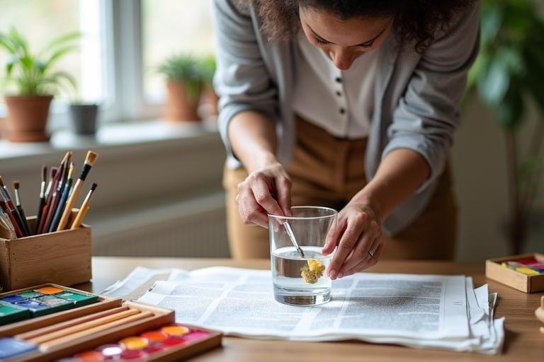 - Entsorge benutztes Wasser und Papiertücher, und entferne die Malunterlage.