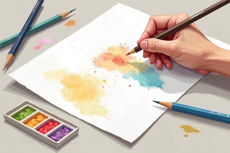 - Nimm dir Zeit, die verschiedenen Materialien auszuprobieren: Zeichne mit dem Bleistift, radiere, male mit Farbstiften oder probiere die Wasserfarben auf einem Testblatt aus.