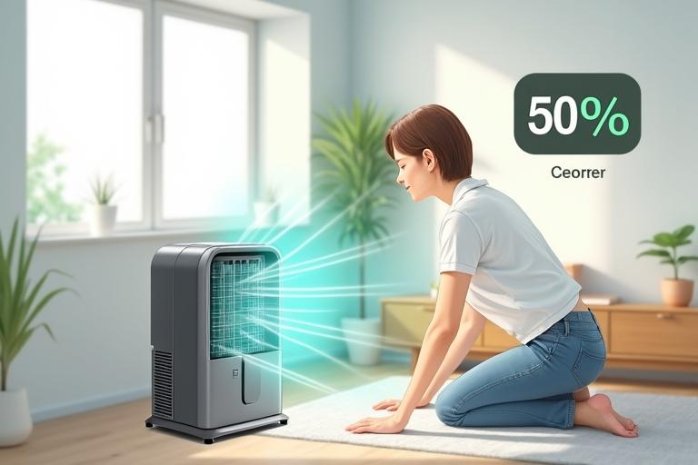 - Stellen Sie einen elektrischen Luftentfeuchter in den betroffenen Raum und stellen Sie die gewünschte Zielfeuchtigkeit (z. B. 50 %) ein.