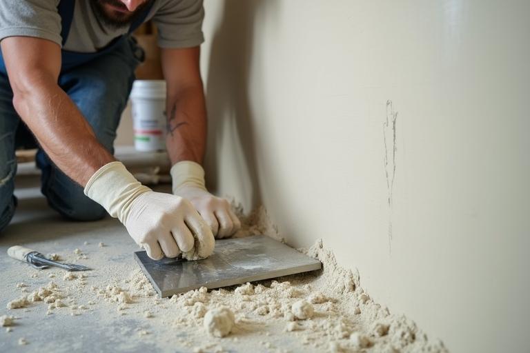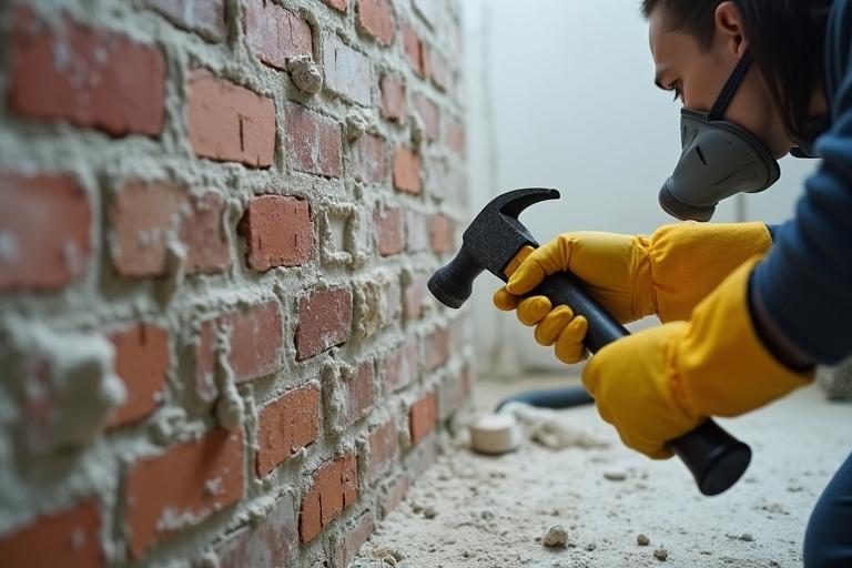 - Entfernen Sie lose oder beschädigte Putzschichten mit Hammer und Meißel bis auf das Mauerwerk.