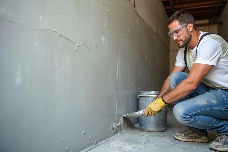 - Tragen Sie die erste Schicht Dichtschlämme mit einem Quast oder einer Glättkelle auf die Wand auf.