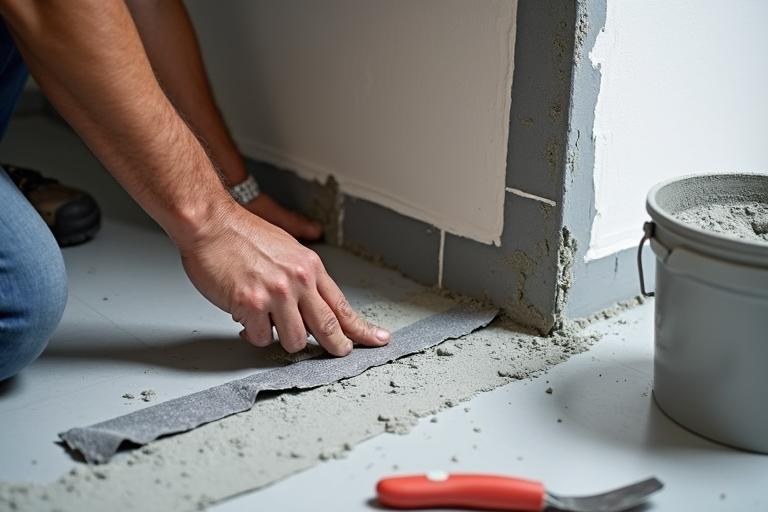 - Drücken Sie das Dichtband tief in die Fuge und überstreichen Sie es mit Dichtschlämme.