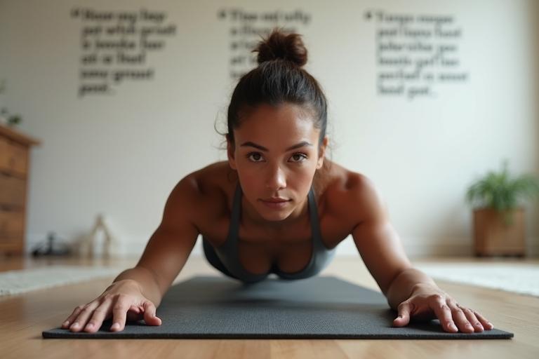 - Gehe in die Unterarmstütz-Position: Ellbogen unter den Schultern, Körper bildet eine Linie von Kopf bis Fuß.
