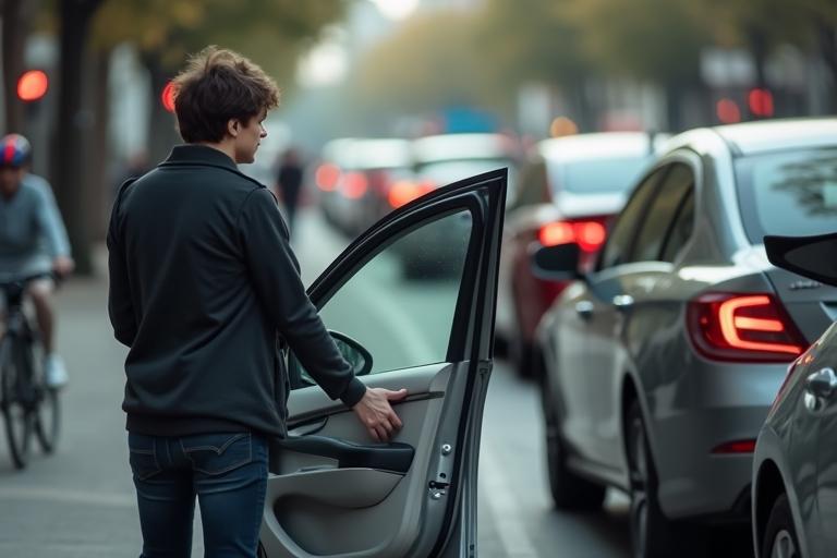 - Öffne die Tür vorsichtig, um andere Verkehrsteilnehmer nicht zu gefährden.
