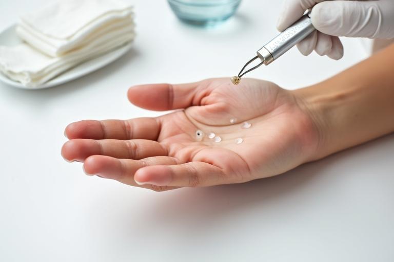 - Entfernen Sie vorsichtig groben Schmutz oder Fremdkörper mit einer sterilen Pinzette, falls vorhanden.