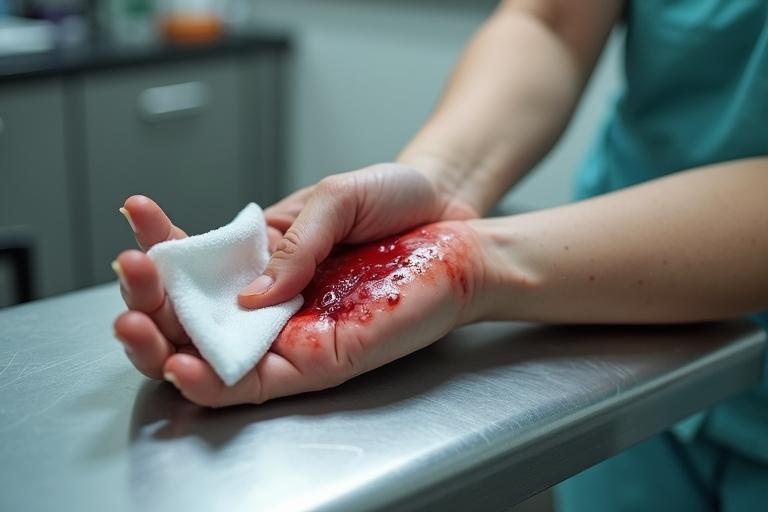 - Drücken Sie eine sterile Kompresse direkt auf die Wunde, um die Blutung zu stoppen.