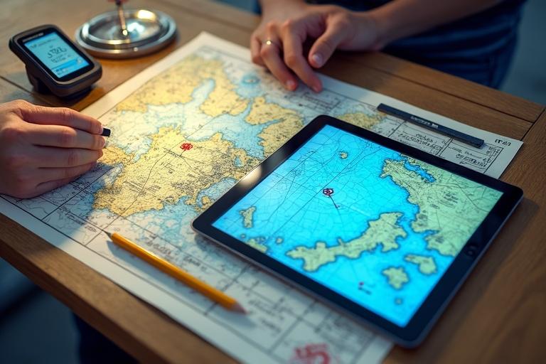 - Vergleiche die Papierkarte mit einer elektronischen Seekarte oder Navigations-App.