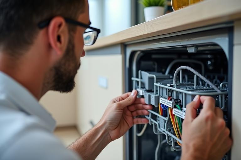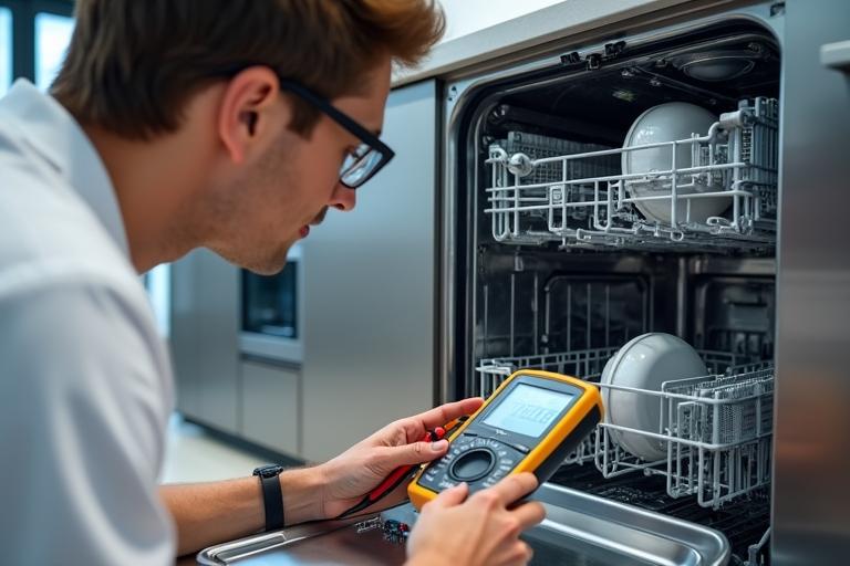 - Geschirrspüler wieder an Strom und Wasser anschließen.