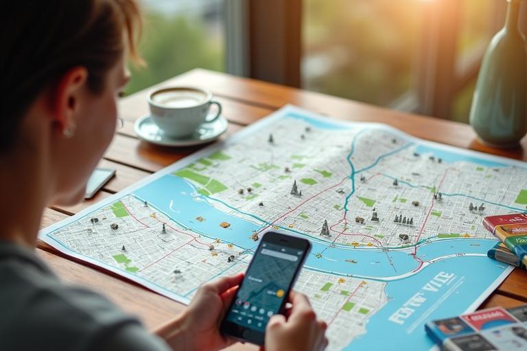 - Öffne deine Karten-App oder deinen Stadtplan und markiere die wichtigsten Zwischenziele.