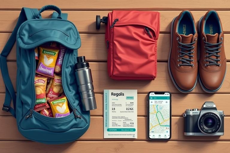 - Packe einen kleinen Rucksack mit Wasserflasche, Snacks, Regenschutz und ggf. Kamera.