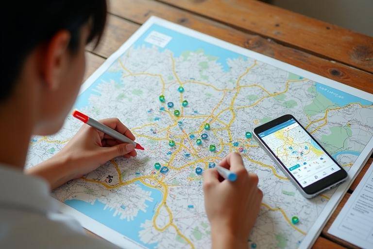 - Nutze Karten-Apps, um verschiedene Routen zu vergleichen und die Entfernung sowie die geschätzte Gehzeit zu prüfen.
